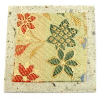 着物用の帯地を裁断し、和紙に貼り付けました。森のメッセンジャーたちを飾るときにお使いください。単体の森のメッセンジャーと併せて使用しますと一層華やかになります。