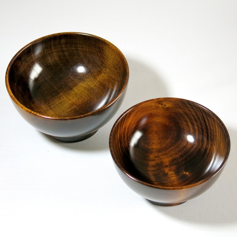 漆の器の艶やかな色合いと手に取りやすさが、日々の食事を更に楽しいものとするでしょう。一人でも多くの方々にこの漆器を手にとって欲しいという思いで作っています。汁椀は高台際にくぼみがあり、指を引っ掛けてお椀を持ちやすくしています。味噌汁は勿論、豚汁などにもお使いください。